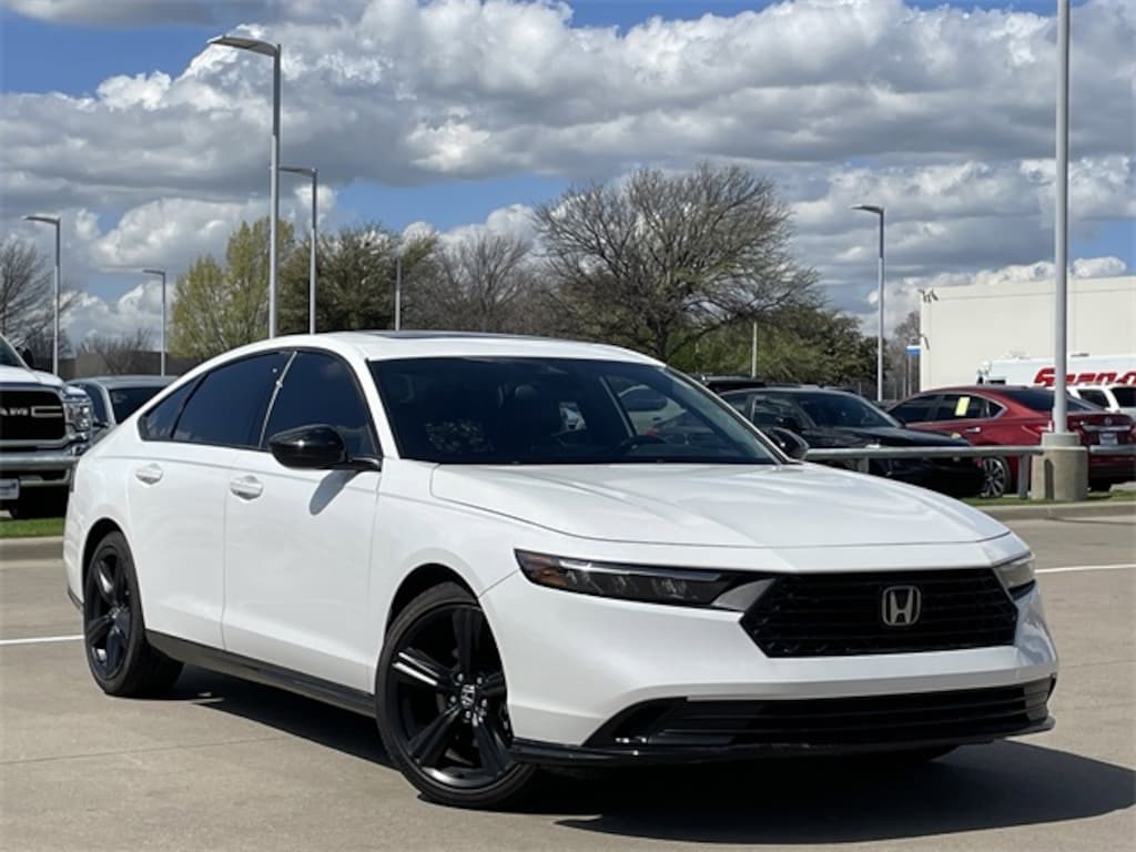 Recent Arrival!, Recent Trade-In Vehicle!, 1-Owner Clean Carfax, Honda Certified, Sunroof/Moonroof, Bluetooth, Leather Seats, Heated seats, Backup camera, Alloy wheels, Recent oil change, Passed dealer inspection, Vehicle detailed, APPLE PLAY AND ANDROID AUTO INTEGRATION, Push button start with smart entry key, Remote start, Best Seller, Honda Sensing® - Driver-Assist Technology, Blind Spot Information System, Adaptive Cruise Control, Brake Assist System, Front Collision Warning, Cross Traffic Monitor, Dealer maintained with service documents, Apple car play navigation, Sport Package, Unit currently going through reconditioning and preparation process, please see dealer for details, Accord Hybrid Sport-L, 4D Sedan, 2.0L 16V DOHC, eCVT, FWD, Platinum White Pearl, Black w/Leather-Trimmed Seat Trim.