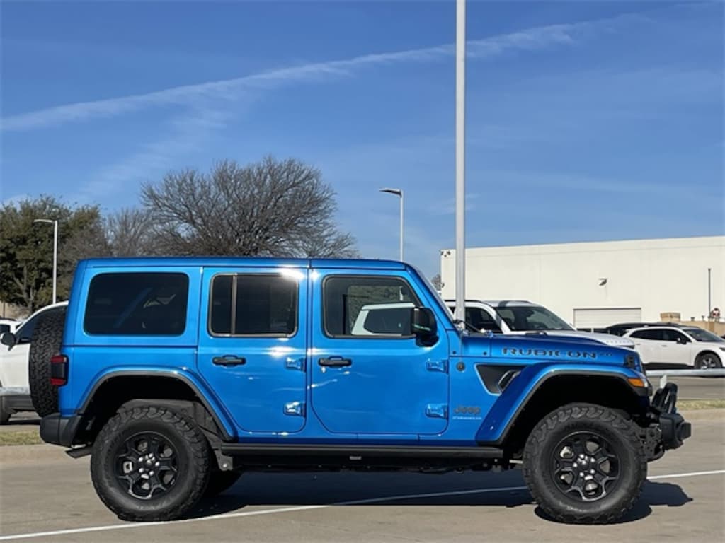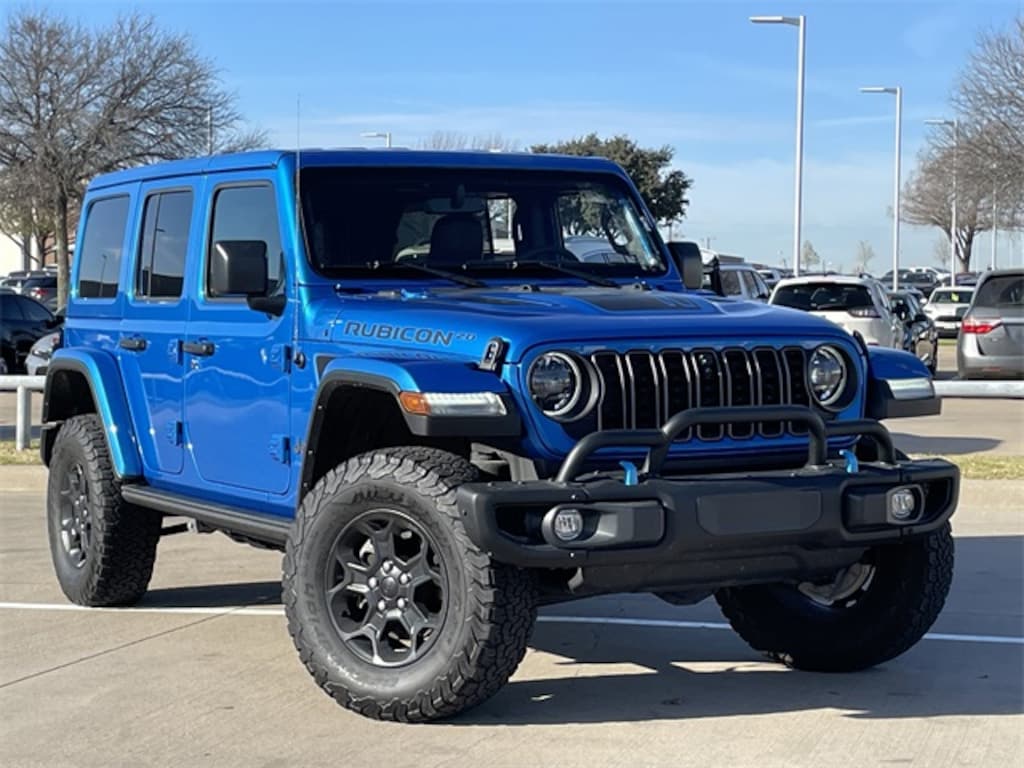 Low Miles, 1-Owner Clean Carfax, Navigation System/Navi/Gps, Bluetooth, Leather Seats, Leather wrapped steering wheel, Heated seats, Backup camera, Alloy wheels, APPLE PLAY AND ANDROID AUTO INTEGRATION, Push button start with smart entry key, 4X4 / 4WD, Blind Spot Information System, Apple car play navigation, Wrangler Rubicon 20th Anniversary Edition 4xe, 4D Sport Utility, 2.0L I4 DOHC, 8-Speed Automatic, 4WD, Hydro Blue Pearl Coat, Red/Black Leather, #1 Seat Foam Cushion, 20th Anniversary Rubicon 4xe Suspension, 7 & 4 Pin Wiring Harness, 700 Amp Maintenance Free Battery, ABS brakes, Alloy wheels, Auxiliary Switches, Class II Receiver Hitch, Compass, Corning Gorilla Glass, Electronic Stability Control, Front dual zone A/C, Heated door mirrors, Illuminated entry, Integrated Off-Road Camera, Leather Wrapped Park Brake Handle, Leather Wrapped Shift Knob, Low tire pressure warning, MOPAR 3 Bar Bumper Hoop, MOPAR All-Weather Floor Mats, MOPAR Rubicon 20th Anniversary Tool Kit, Nappa Leather Seats, Navigation System, ParkView Rear Back-Up Camera, Passenger door bin, Premium Door Trim Panel, Premium Wrapped Red I/P Bezels, Quick Order Package 29T Rubicon 20th Anniversary, Red Interior Accents, Red Seat Belt, Remote keyless entry, Rubicon 20th Anniversary, Rubicon 20th Anniversary Grille, Rubicon 20th Anniversary Shifter Medallion, Rubicon 20th Anniversary Side Hood Decal 4xe, Rubicon 20th Anniversary Swing Gate Plaque, Rubicon 20th Anniversary Top Hood Decal 4xe, Steel Bumper Group, Steel Front Bumper, Steel Rear Bumper, Traction control, Trailer Tow & Aux Switch Group, Wheels: 17" x 7.5" Black Beadlock Capable.
